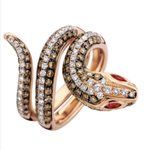 Schaap en citroen ring slang. Rood goud 18k 11.3 gr, briljant bruin/wit diamant 1.86