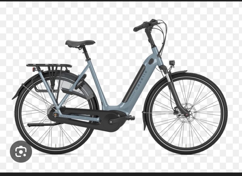 Ebike met grote accu. Fietsmand aan de stuurpen bevestigd en een monkey mee. Het orginele zadel met verende zadelpen is vervangen door een gel zadel zonder verende zadelpen.