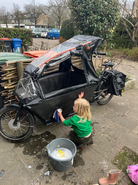 De fiets is mogelijk te herkennen aan: Qiewie regenhoes Dopje van de reflector links voor ontbreekt Op de motor staat geen bosch logo Er zitten oranje spanbanden aan de achterkant van de bak